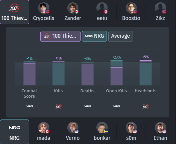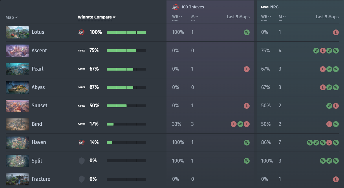 NRG vs 100 Thieves 比赛历史 (vlr.gg)