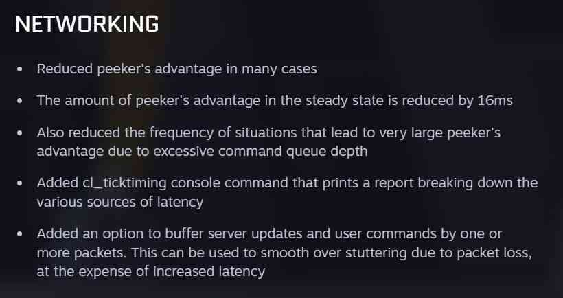 他们添加了控制台命令cl_ticktiming到游戏,它收集指示各种延迟来源的报告。玩家将能够找出延迟问题所在并更快地修复它。