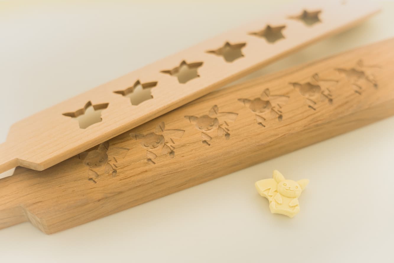 还有以皮卡丘、樱花、秋叶为主题的云锦图案干果,突显春天和秋天两个季节的美丽。糖果中还有使用手工雕刻的木制模具制作的模制干糖果。