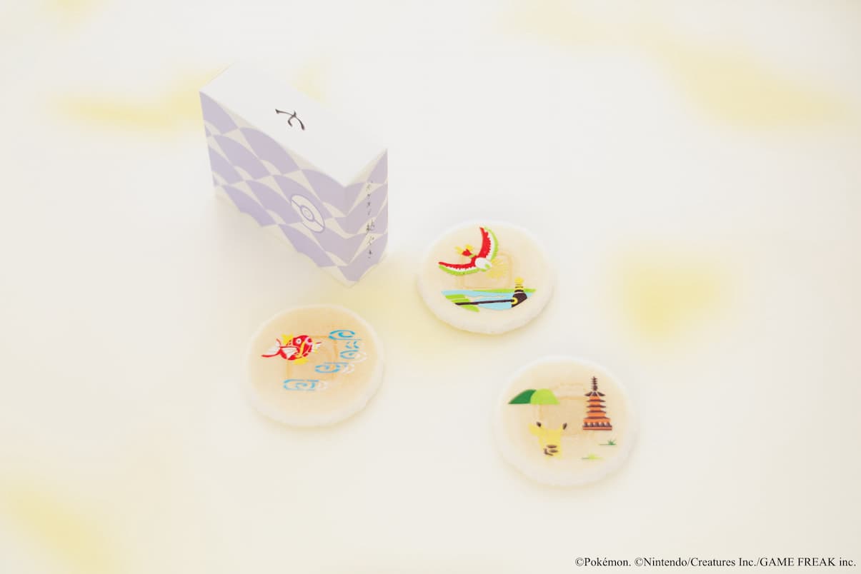 首先是神奇宝贝新鲜糖果,有四块,类似于皮卡丘、凤王、达马尼坦和克洛德西尔(或日语中的杜哦)。这些是“生生果子”,是一种传统的日本糖果,旨在代表主题,通常是季节或诗歌。这些特殊的上生水是使用京都东山的水制成的。
