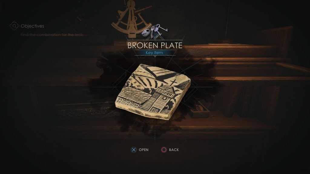 就像伊丽莎白·佩罗西的房间一样,你需要解决两个谜题才能获得破碎的盘子:药盘谜题和解锁抽屉柜上的占星挂锁。
