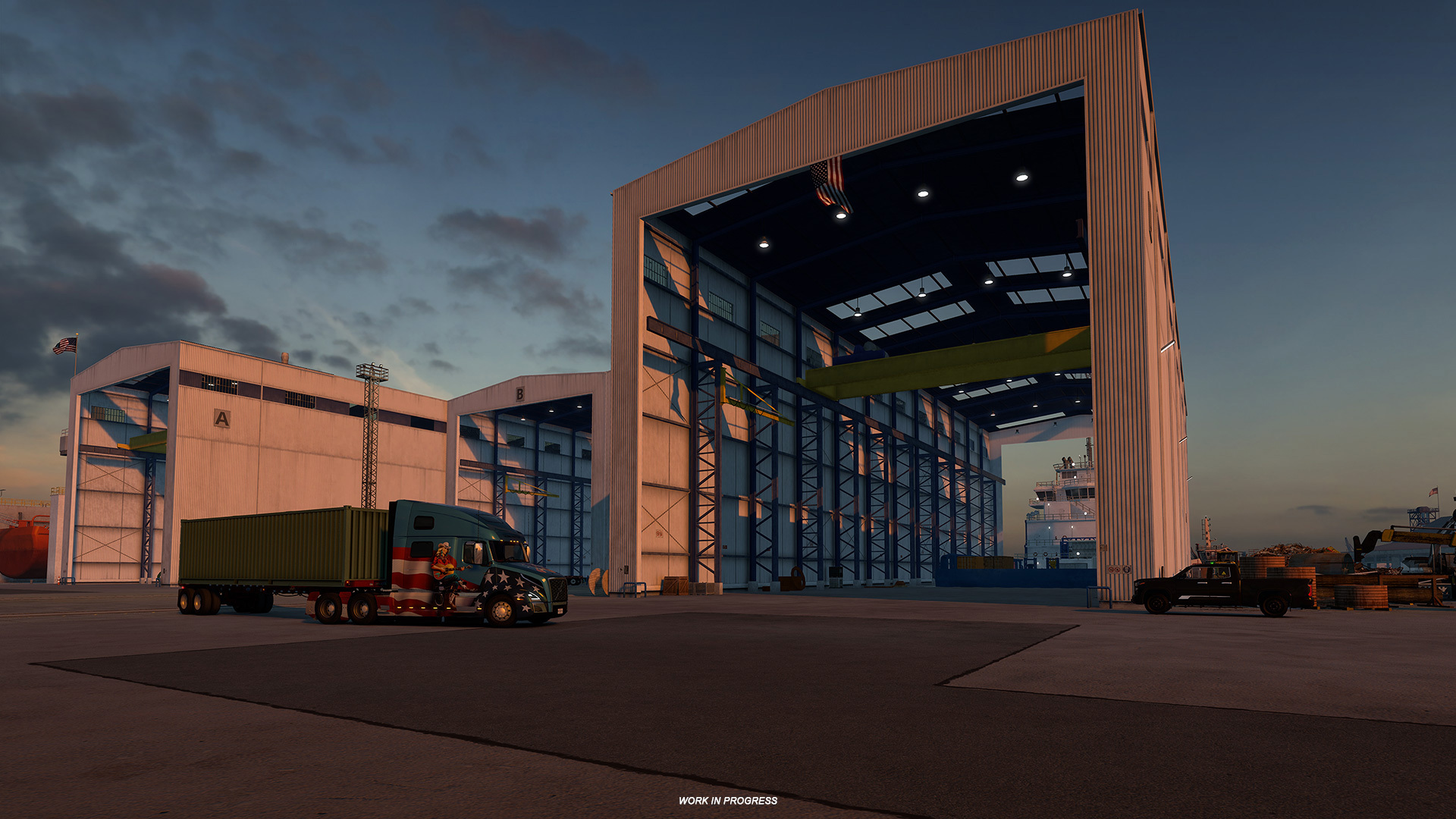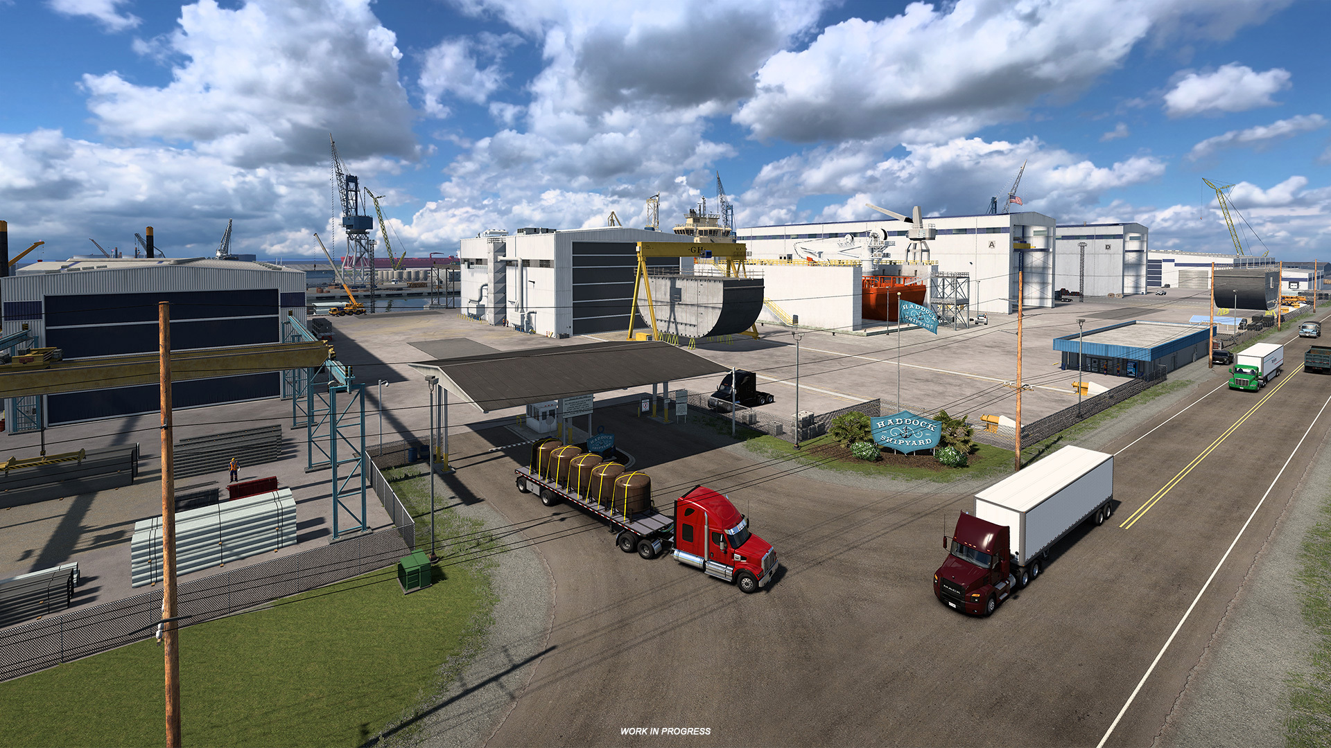 它将包括许多行业,包括定制的河港,化学厂,石油储存设施以及美国卡车模拟器中实施的第一个定制造船厂仓库。