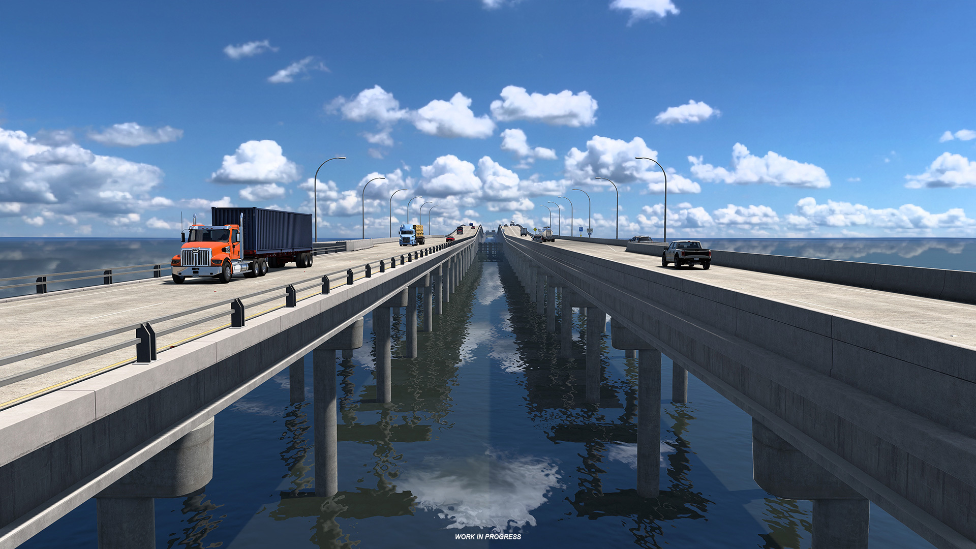 我们可以看到巴吞鲁日的霍勒斯·威尔金森大桥、新奥尔良的新月城连接线和休伊·P·朗-OK·艾伦大桥、庞恰特雷恩湖堤道(世界上最长的连续桥)以及查尔斯湖的卡尔卡苏高桥和卡尔卡苏河大桥。