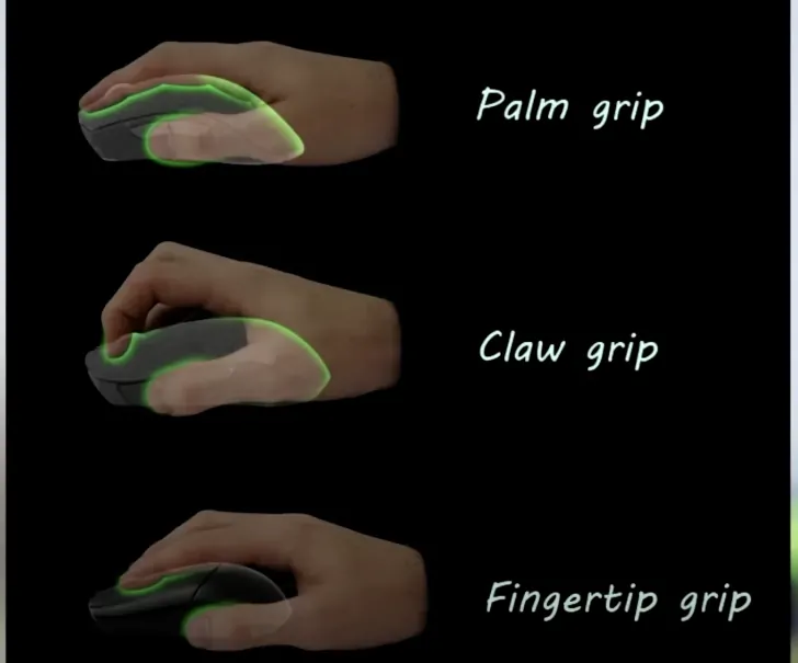 这手掌握力是最常见的,因为它允许玩家将整个手放在鼠标上,从而实现更好的运动控制。