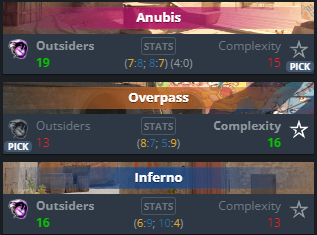 这两支球队上次交锋时,两名不同的球员正在为球队效力副总裁,那时,副总裁赢得了那场比赛2-1 比分。现在,情况不同了副总裁有两名新球员和一些额外的经验。从那时起,复杂性也发生了一名球员的变动;是“FaNg”,而“EliGe”就是在这支队伍中取代他位置的人。他们能否重复之前阵容的成功,或者是复杂这次能登上顶峰吗?我们会看到。