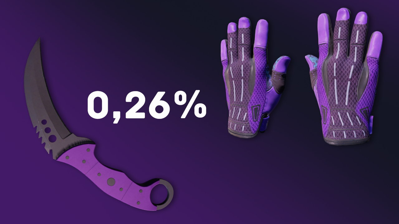 手套的掉落概率与刀具相同,均为 0.26%。查看我们的“2025 年 10 款最佳 CS2 手套:每位玩家的必备之选”指南,了解炫酷的手套。