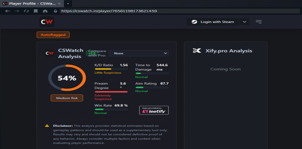 除了 Valve 自己的报告系统之外,还有两个第三方平台在识别潜在作弊者方面表现出色: CS观察和 利特菲。这两项服务都会分析 Steam 平台之外的玩家统计数据和社区报告。