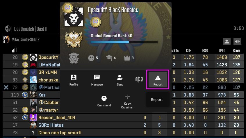 举报是打击作弊最有效的方法,因为 Valve 依靠社区报告来改进信任因素并馈入空调系统。即使您不能百分百确定,举报也比保持沉默要好。