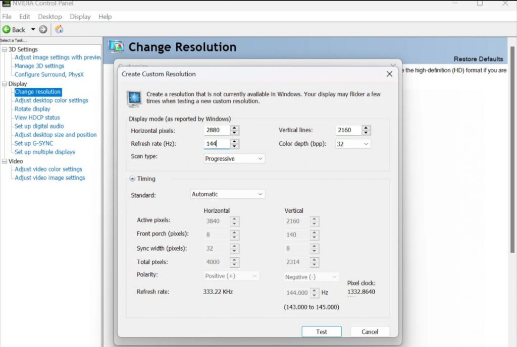 您可以找到官方 NVIDIA 自定义分辨率指南这里。