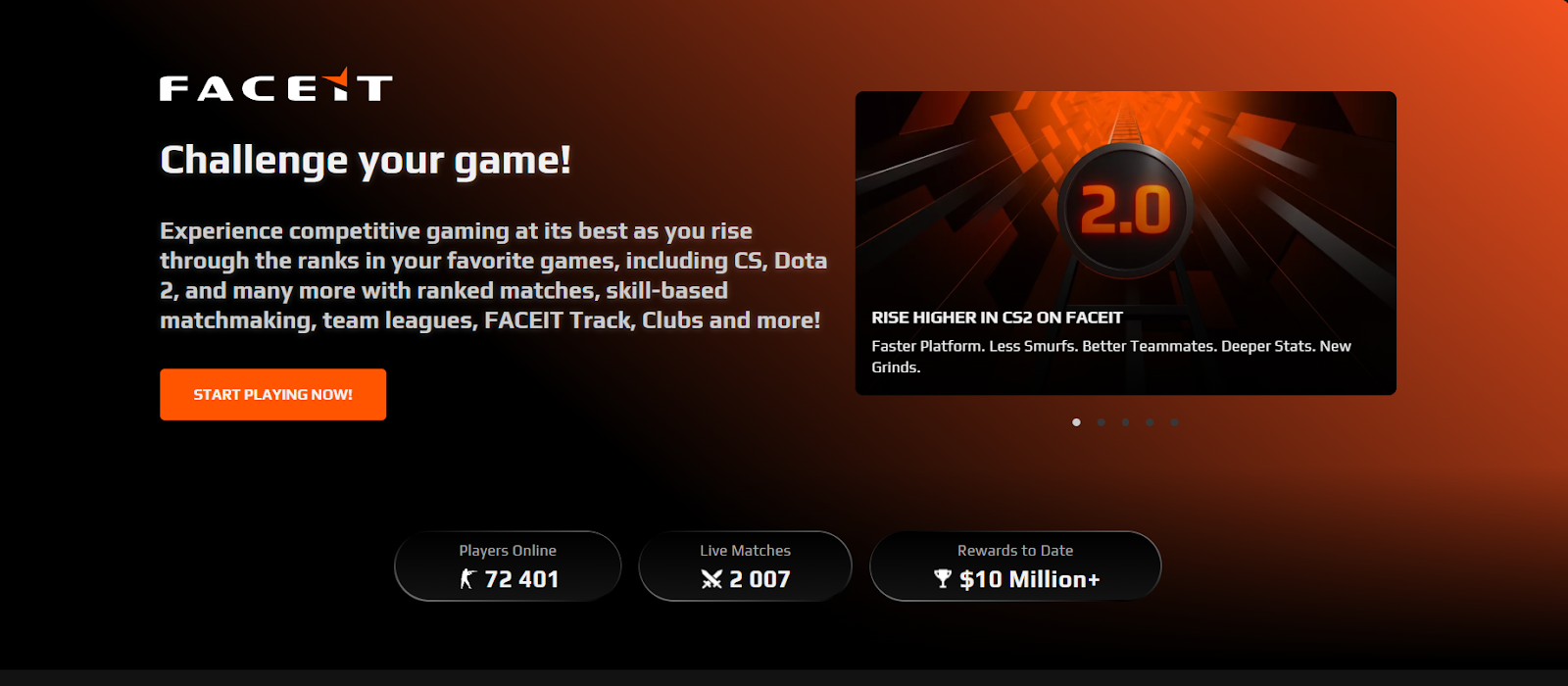 如果您对高级模式的评级不满意,我们可以为您提供一个选择。这种替代方案在 CS2 社区中众所周知。FACEIT是第三方客户端这让您可以与全球一些最有经验的 CS2 玩家一起玩。