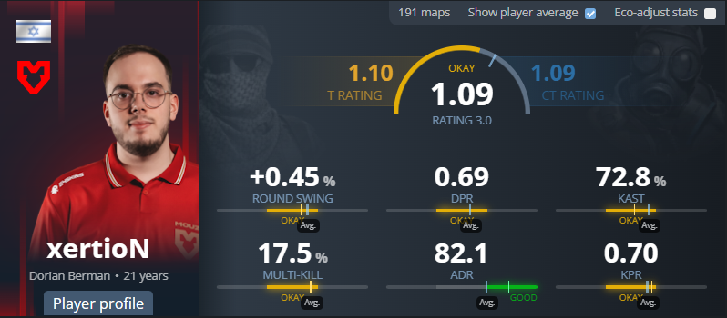 年仅21岁的他仍在不断进步。他的1.02 评级在重大赛事中以及与顶级对手的比赛中的表现突显了他的潜力和稳定性,正是这让他来到了这里。这条道路并非一帆风顺。决赛中的一些下滑和一些安静的线下比赛使他无法攀登更高的位置,但在高压情况下多次脱颖而出足以巩固他在前 20 名中的地位。