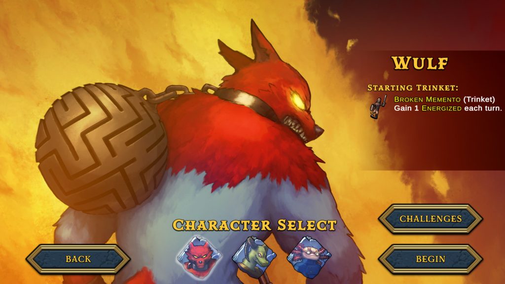 在这一点上,游戏中将有3个字符 - 嗜血的Wulf,偷偷摸摸的女巫Draga和疯狂的Axolotl。他们每个人都是一个普通人,被吸引到名义上的恶魔的镜子中,被炼狱中的炼狱转换成并被困住,他们必须逃脱。每个角色都有一个独特的起始小饰品,可以帮助确定它们的播放方式,尽管您可以在跑步中获得更多。我们大多在魔鬼的镜子里看到了Wulf,他很强大,并且能够每回合都从自由连锁店中受益。