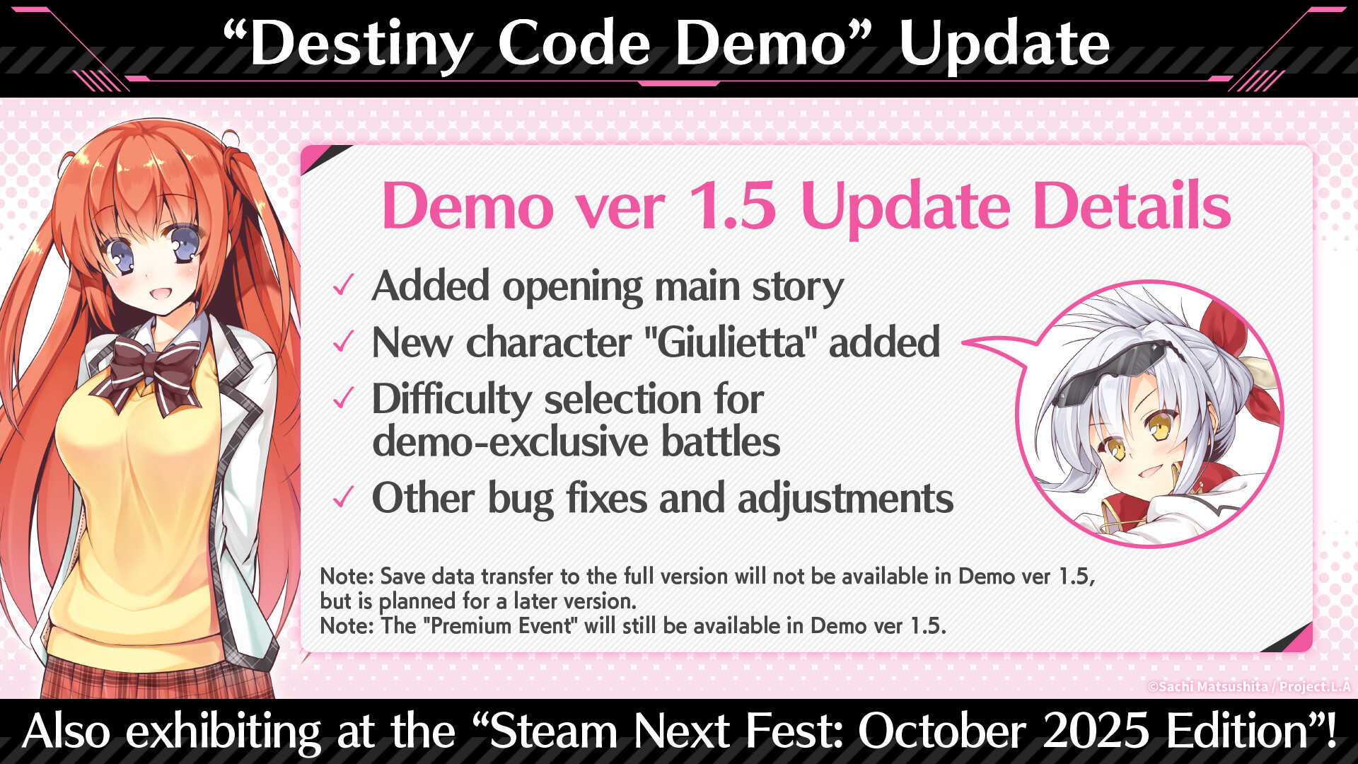 为了庆祝 Steam Next Fest,Project.LA 透露,其《美丽女孩 × 卡牌战斗 RPG 《命运密码》》的演示版 1.5 现已免费提供,截止时间为美国东部时间 2025 年 10 月 20 日星期一下午 1:00。