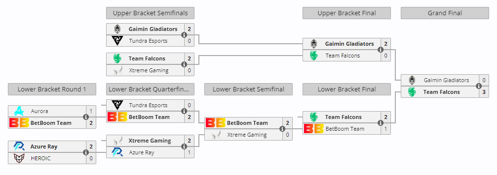 BetBoom 团队顺利晋级败者组。然而他们运气不佳,在败者组决赛中,猎鹰队击败了一支来自CIS,从而确保在总决赛。