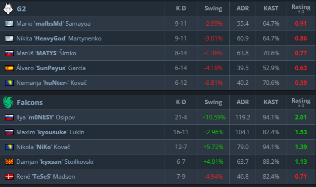 猎鹰队通过 AWP 和步枪设置之间的紧密协调找到了节奏 – 并且G2根本跟不上。