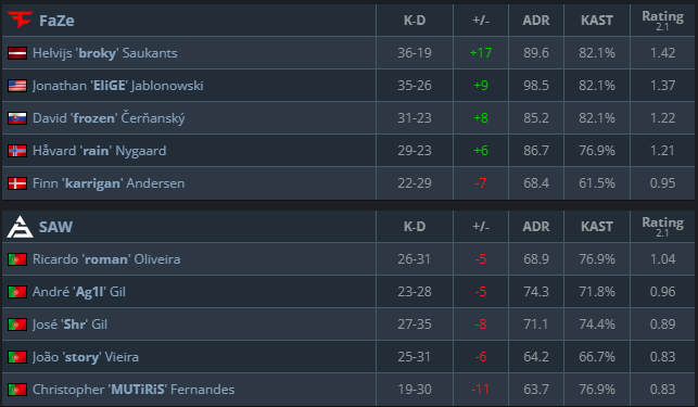 FaZe 四分之一决赛比赛结果