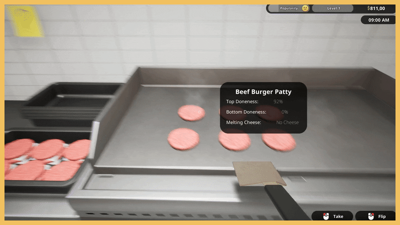 翻转汉堡也变得越来越容易。现在有一个实际的动画,玩家可以翻转汉堡,而无需手动将它们放在翻转器上。然而,玩家仍然需要握住脚蹼才能做到这一点。