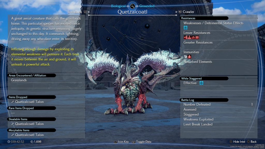 羽蛇神是一种长着羽毛的恶魔,拥有强大的物理攻击和闪电能力。由于这只野兽鸟在空中很难被击中,我建议在你的队伍中加入巴雷特或艾里斯,以确保当他在竞技场上空翱翔时你可以用子弹或魔法击中他。此外,确保你的队伍中有几个冰魔法使用者,用暴风雪向羽蛇神施加压力,因为冰魔法是它的弱点。而且,正如您所期望的那样,如果您碰巧装备了湿婆召唤,那么它在这里绝对是关键。