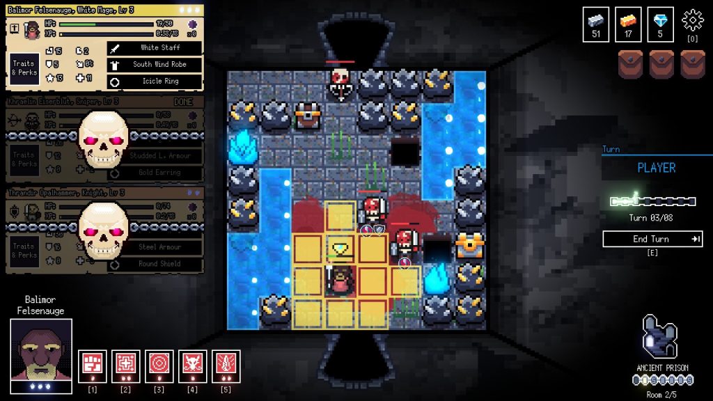 现在您已经了解了游戏的运作方式,让我们来谈谈它是如何玩的。因为你是在与时间赛跑,所以每个转弯都很重要。除此之外,你的角色每回合的行动AP(行动点)也是有限的。移动需要 1 AP,攻击也是如此,而且许多技能的成本更高。你的起始治疗师每回合都可以治疗,但需要花费 2 AP,这意味着他们无法移动和施法。增加角色 AP 的主要方法是升级他们。一旦他们达到 3 级或 5 级,他们就会增加基础 AP,而每次升级都可以让他们学习新的能力。我最喜欢的游戏之一是《巨魔之血》,它让我的冠军每回合恢复一点点,但我也教我的弓箭手如何攻击两次,以及我的治疗师如何驱逐不死生物。
