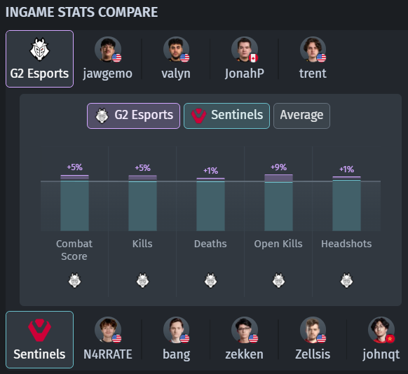 G2电子竞技在与哨兵队的比赛中表现强劲,尤其是在进攻方面。他们的进攻成功率很高,通过尽早控制地图并执行精心策划的策略赢得了大部分回合。然而,在防守方面,他们的表现较弱,获得的回合数较少。这凸显了他们在守住阵地和适应哨兵侵略性打法的能力上可能存在的差距。