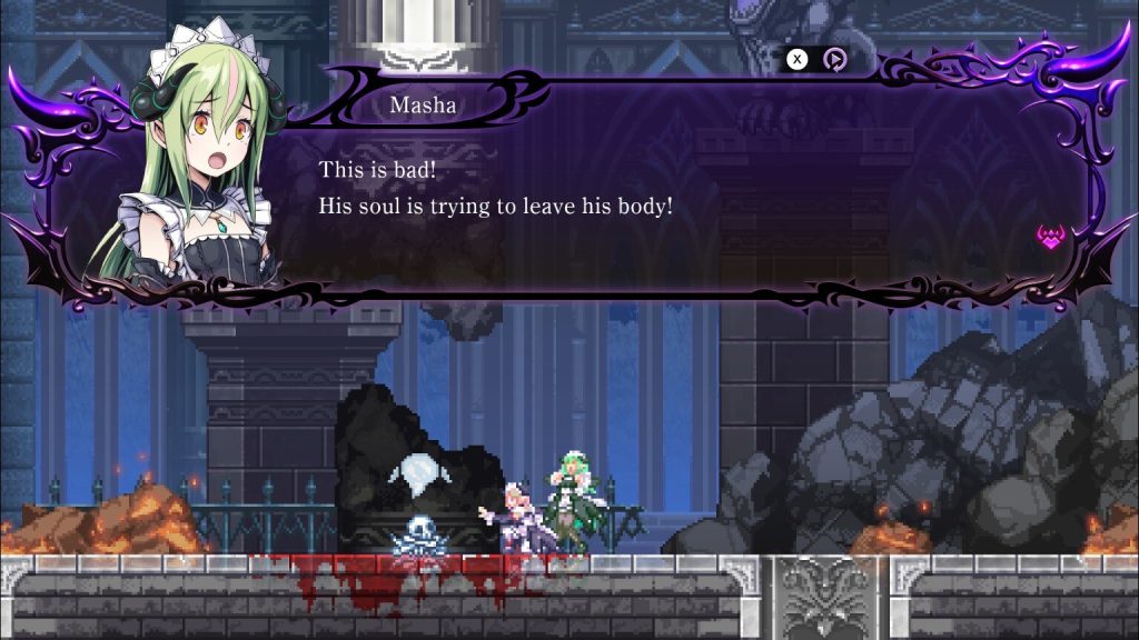 第一款游戏的主角是猎杀恶魔的姐妹忍和玛雅,而这一次你扮演的是一对恶魔女仆(也是姐妹),名叫 Kirika 和 Masha。他们的目标是什么?让他们深爱的主人,恶魔领主马克西姆·猛攻复活!仅这一点就足以引起我的兴趣,尽管我很快发现这对新人与他们的人类前辈有很多共同点。
