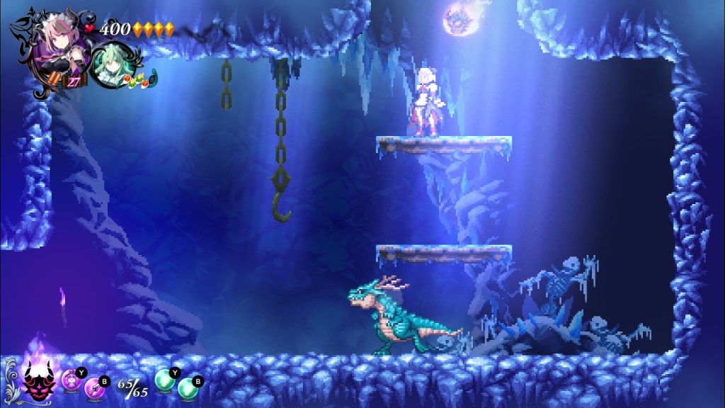 我觉得这是 Inti Creates 试图迭代他们最后一款真正的银河恶魔城《幻日幻影 Yohane - Blaze in the Deepblue》中的制作机制。问题是,那场比赛做得更好。如果有一种方法可以在《黑暗之仆》中组合或调整副武器,我可能会更喜欢这个。相反,我经常忘记使用它们,除了对于穿越黑暗区域至关重要的火炬和治愈灯笼。