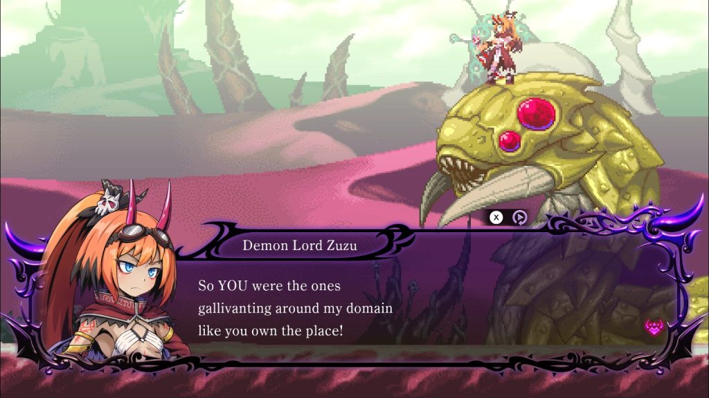 不久之后,我就遇到了恶魔领主祖祖的巨虫。虽然蠕虫本身是一个可以控制的重复小 Boss,但小恶魔少女的加入使它几乎不可能。他们一起吐出牢不可破的尖刺块,使我无法在舞台上自由移动,从地面突然爆发攻击,甚至用激光束覆盖大部分屏幕。我不介意挑战,但我绝对对不公平和不平衡的难度感到冒犯,而这个游戏有很多这样的问题。