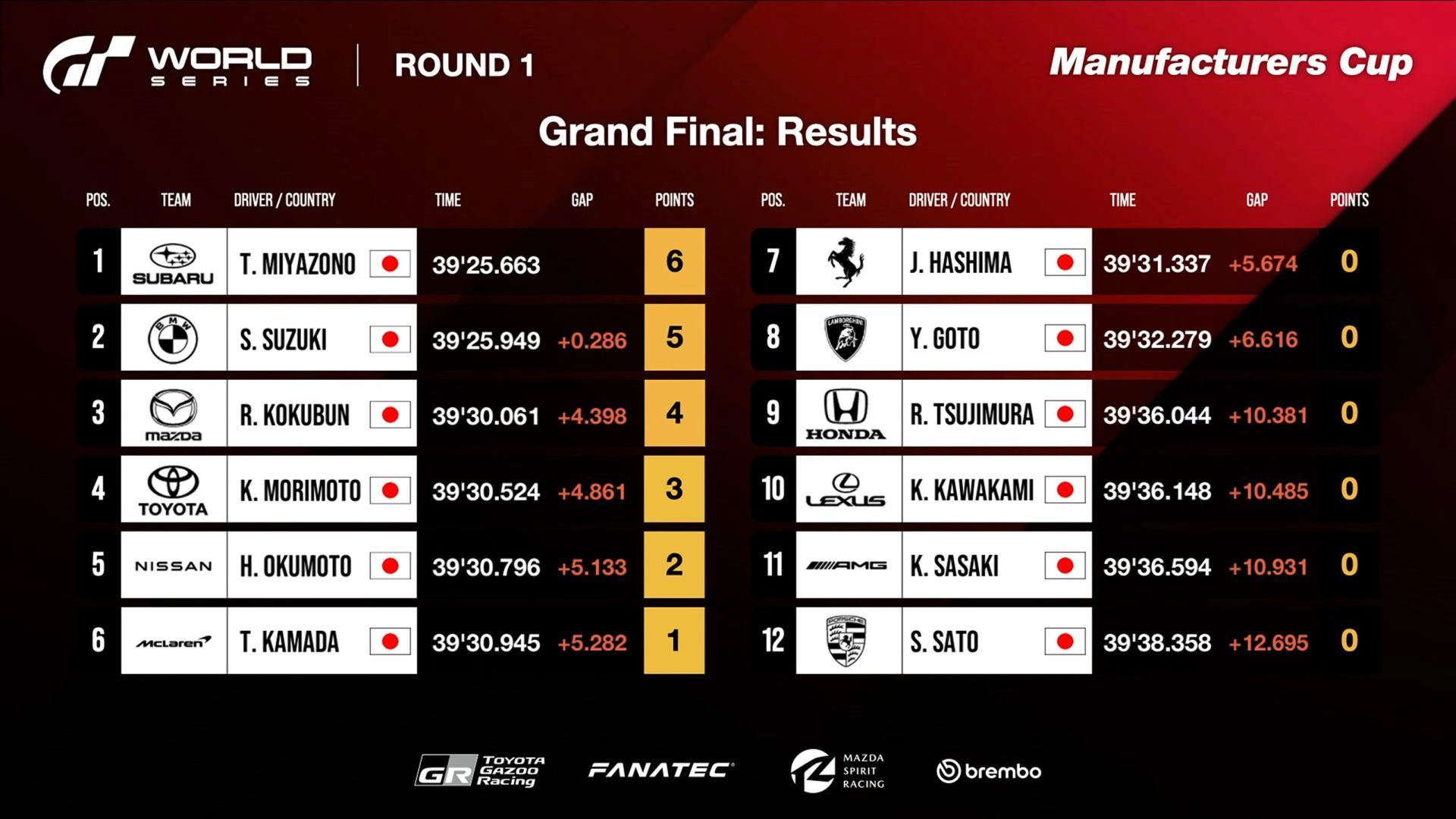 代表宝马的铃木圣哉获得第二名,代表马自达的工文良太获得第三名。