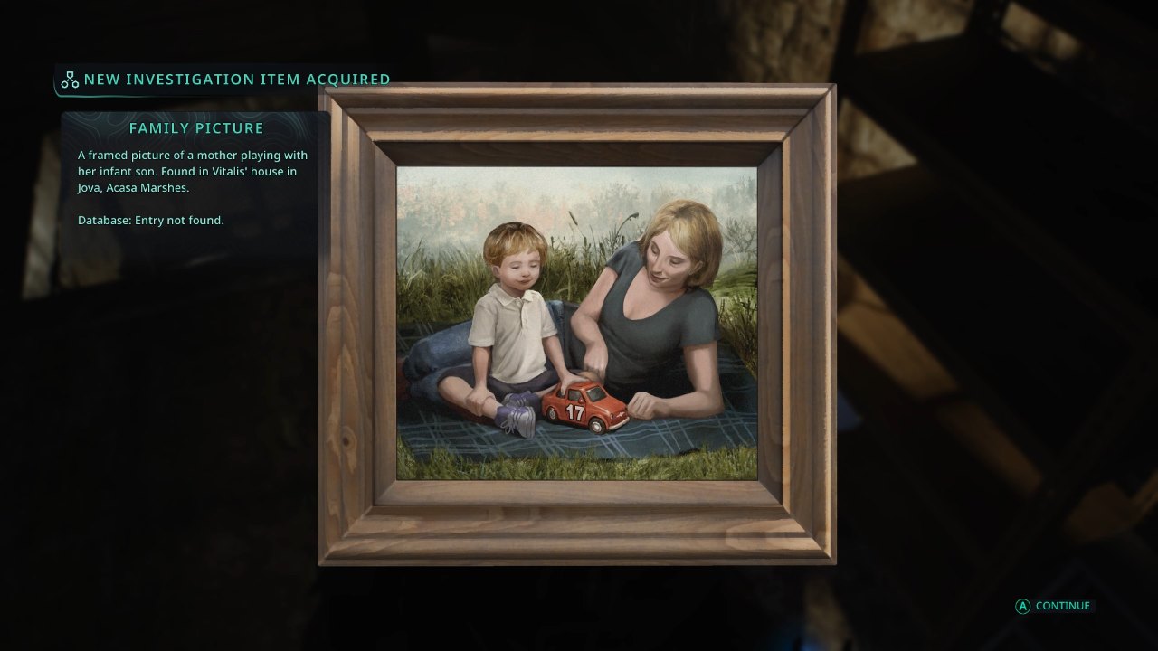 当您第一次进入房子时,请探索主楼层。你会发现外面的桌子上有一个发光的黄色物品,这是一套车钥匙,钥匙圈上有数字 32。带上它们继续探索。寻找一个带有奇怪钥匙孔的锁着的箱子,然后使用雷米的传家宝项链将其打开。你会在里面发现一张纸条和一张女人和幼儿玩耍的照片。