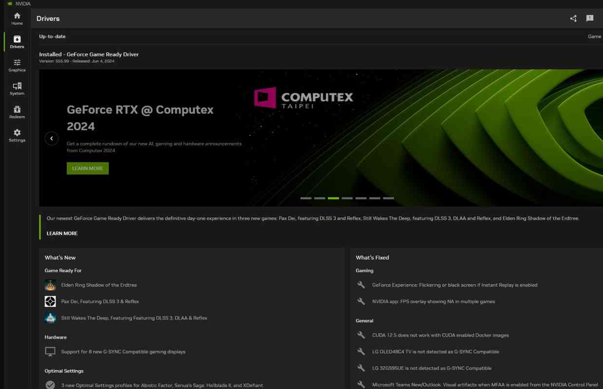 打开GeForce Experience 应用程序并单击“司机”按钮位于左上角。此页面将指示是否有可用更新,以便您下载并安装很容易。