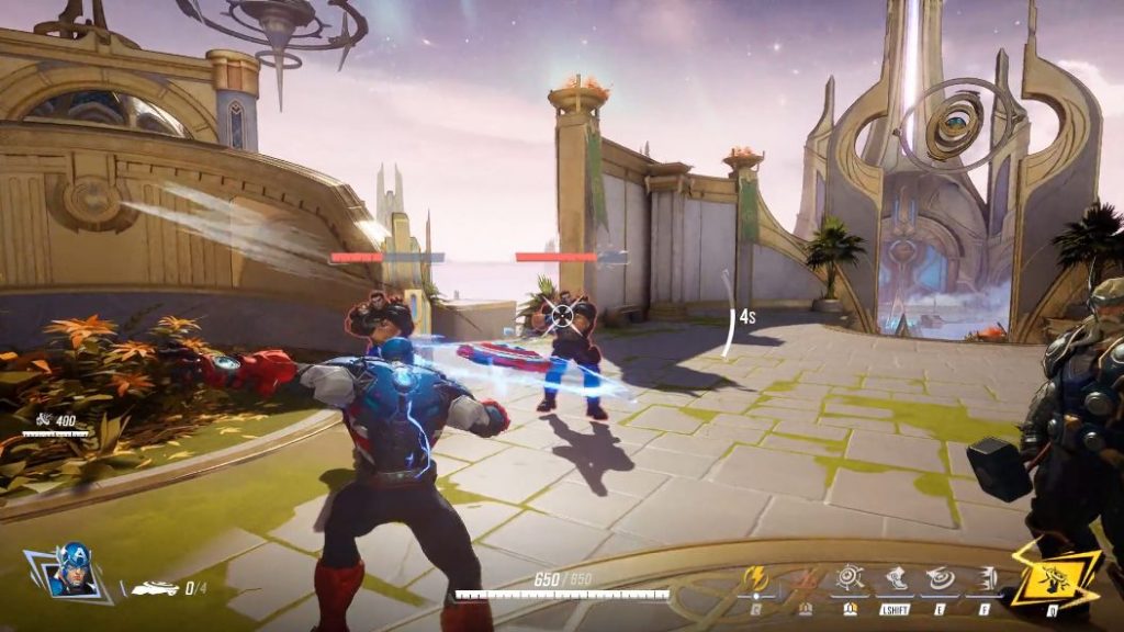 然而,如果你让美国队长独自面对游戏中最大的坦克以外的任何东西,他基本上可以击败任何人。哨兵打击在两次命中后变成远程攻击,这意味着在几次打击后改变主意的决斗者和战略家无法摆脱他,如果他们以某种方式拉开距离,队长可以用超级士兵猛击和振金能量锯追击他们。后一种能力也可用于击倒刚刚在拐角处转身的低生命值敌人。