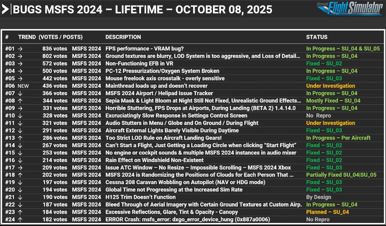 接下来,我们继续讨论 MSFS 2024 的更新反馈快照。VRAM 消耗将在 Sim Update 4 和 6 中看到重大变化。