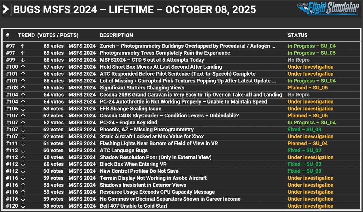 关于着陆时和在机场移动相机时出现卡顿的调查正在进行中。 Sim Update 4 中包含两项优化,应该会改善这种情况。