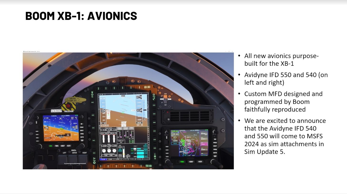 它将包括 Avidyne IFD 550 和 450 航空电子设备包的实施,第三方开发人员可以从 Sim Update 5 中使用这些包。