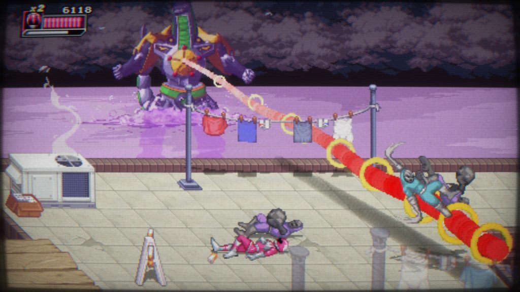 你还必须移动光标,炸飞机器人敌人和驾驶汽车的油灰流氓。至于 Megazord 战斗,更多的是学习和躲避攻击模式,而不是无意识地敲击按钮,使用你自己的攻击来给你的仪表充电,以释放毁灭性的最终攻击。正如我在与 Eye Guy 的一场特别激烈的比赛中了解到的那样,你实际上无法通过暴力破解它们。