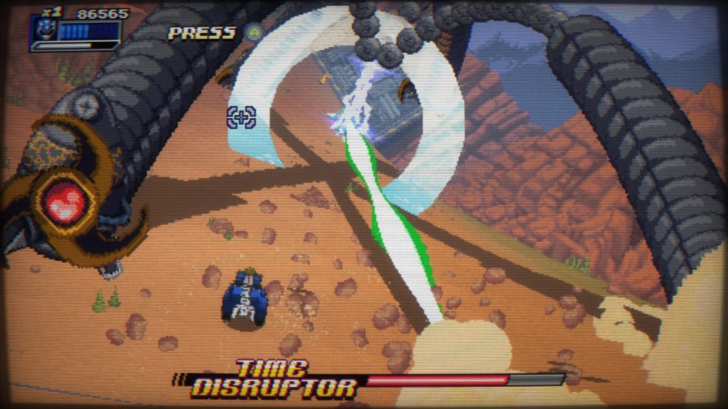 为了纪念 Robo Rita 和 Rita Repulsa 的团队合作,甚至还有一场 Boss 战,同时对抗两个敌人——矮胖鸡和火鸡混蛋!前者像羽毛剪刀一样传送,而后者则投掷炸弹并旋转以进行毁灭性的激光攻击。正如你所预料的那样,最后的 Boss 战是对阵相当令人恼火的机器人丽塔,稍后会详细介绍。