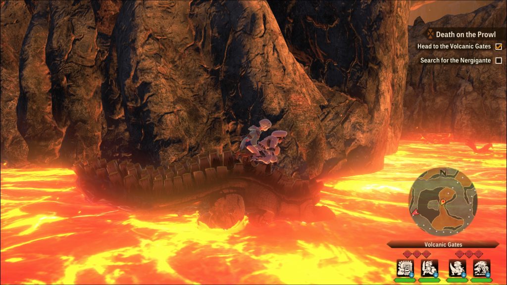 仅从核心游戏循环来看,《废墟之翼》与其前作并没有太多区别。就像上次一样,你将按照故事的指示,系统地在世界地图上从一个生物群系旅行到另一个生物群系,同时狩猎怪物、收集怪物,并且……好吧,可能会狩猎更多怪物。毕竟这是一款怪物猎人游戏。然而,当你观察规模和范围时,情况就开始出现偏差。 《Wings of Ruin》的世界地图比 MHS 的整体世界地图大得多,消除了许多第一款游戏的生物群落经常出现的局促感。