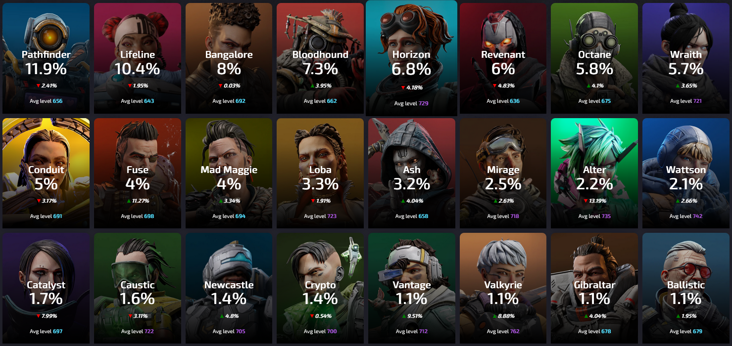 根据 apexlegendsstatus.com,《Apex 英雄》《地平线》的选择率