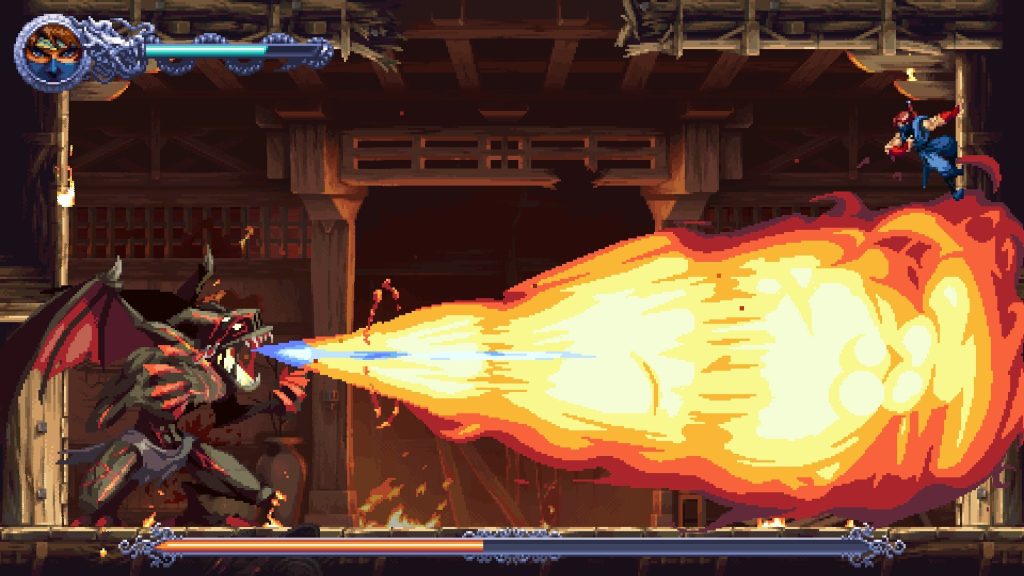 他会来回猛冲,传播火焰并召唤骷髅头恶魔,我和他战斗时很开心。另一场 Boss 战是在教程部分对阵 Ryu,虽然理论上你可以击败他,但他确实踢了我的屁股。