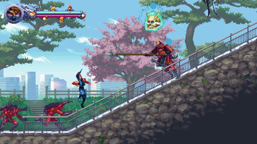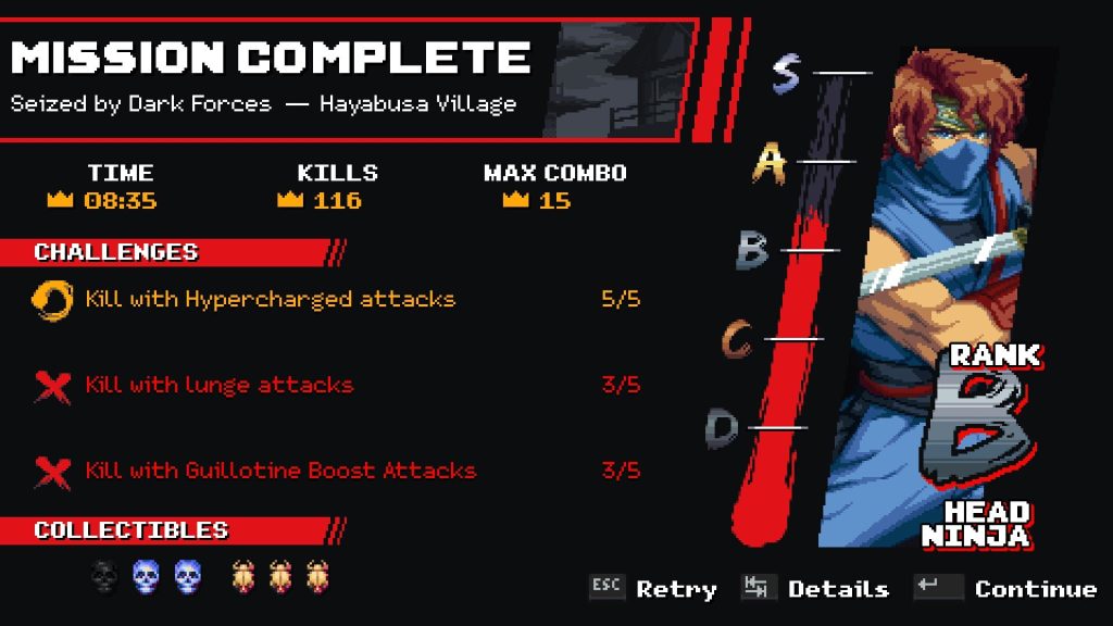 第一级有一个很长的教程,您可以在其中学习基础知识。即使您以前玩过《忍者龙剑传》,我敢打赌,由于 The Game Kitchen 的专注工作,还有很多新领域需要探索。虽然你可以疯狂地攀爬墙壁,并且可以奔跑、跳跃、闪避和向前猛冲,但这种体验的关键是一种叫做断头台提升的东西。