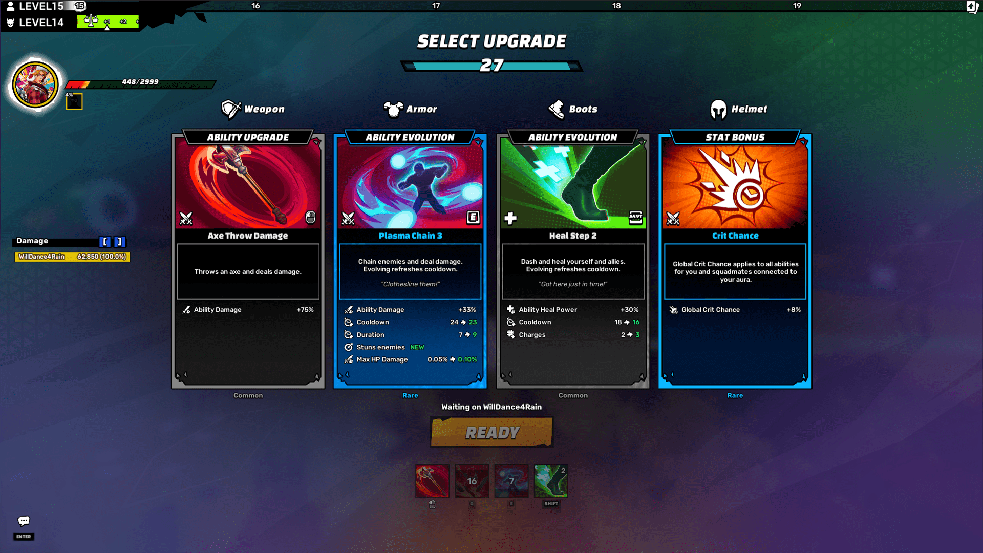 每个盔甲都有自己的卡片,然后用于在运行中确定您的升级选项。一切都有升级,包括对能力的某些方面的重大改进,例如冷却时间或伤害输出,或者更一般的进化,这些进化有利于一系列因素,但程度较小。