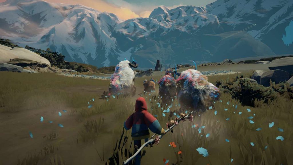 后来在演示中,一旦我逃离了一座反乌托邦城市,我就和我的牛角兽群一起在田野里狂奔,并体验到了踩踏的乐趣。通过触摸特殊的花朵,我可以让我的生物发出彩虹般的光芒,然后向前冲去。令人惊讶的是,我扮演的小顽童竟然能够跟上他们,尽管需要一点点速度。