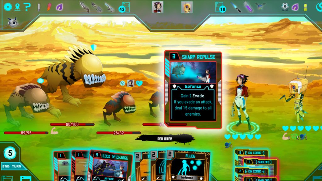 你迫降在一个外星球上,需要在与危险生物的战斗中寻找补给。当然,虽然你有一副代表动作的牌,但它分为用途有限的牌和用途有限的牌。前者的好处是,如果你在它们用完之前使用它们(称为费用),那么它们会发出一声巨响,造成巨大的伤害。该游戏还允许你同时控制两个玩家,但我承认我没有活到看到这个功能的时间。
