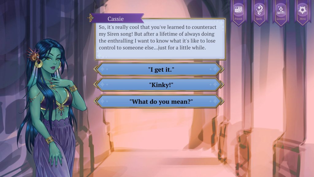 演示实际上是开放的,让你想玩多久就玩多久。这很有挑战性,只是限制自己玩得更久。我发现了游戏的世界,它发生在一个充满性感和活力的魔法学校里。你可以和任何你想要的人发生浪漫关系,但不要指望这些关系会成为一种关系。校园里有拥有未来视力的仙女、恶魔般的好东西,甚至还有一些人类同胞。