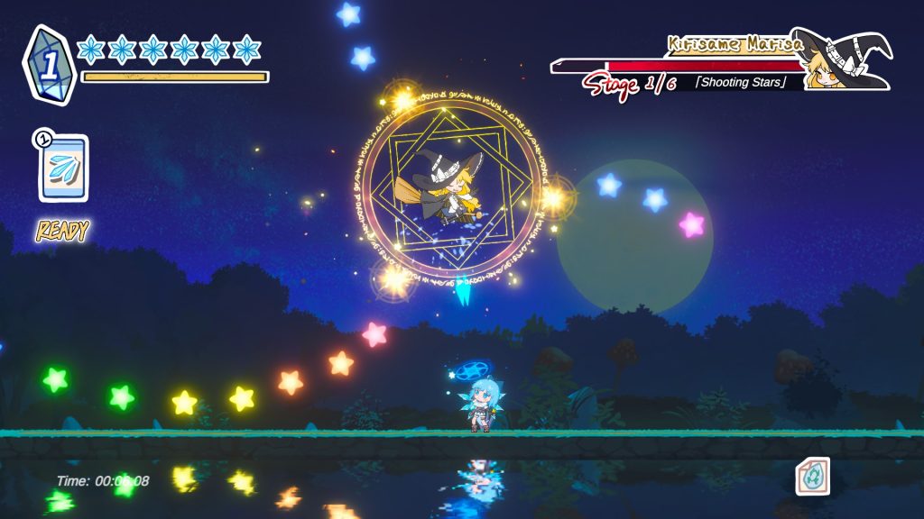 每个 Boss 都有多个阶段和一波又一波复杂的子弹需要躲避。你的生命值也只有几个,所以只需要几个不幸的时刻,你就会遭遇灭顶之灾。最有趣的阶段是当老板完全刀枪不入的时候,我的工作就是躲避坠落的流星和连发的子弹,感觉就像永远一样。最终我进入了最后阶段,经过几次尝试,我向女巫展示了我是英雄。