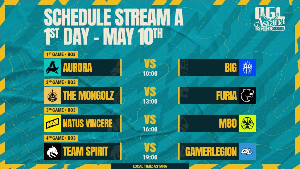 2025 年 PGL 阿斯塔纳站是一项 S 级活动,举办时间为5月10日到5月18日在阿斯塔纳,哈萨克斯坦。十六支队伍将角逐奖金池1,250,000 美元。参与者中有为胜利而生,精神,G2,以及其他顶级球队。活力是没有参加这项赛事,这给了其他球队举起奖杯的机会,增强了他们的信心。