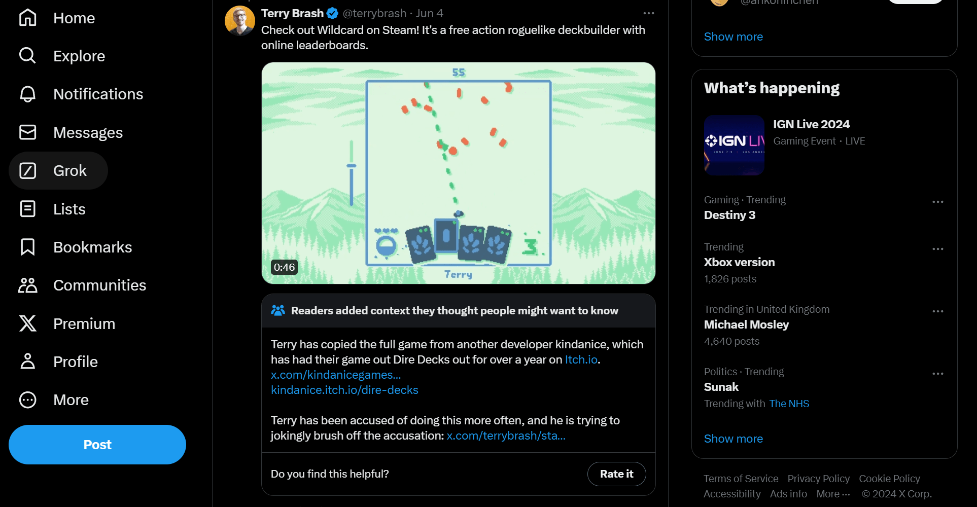 尽管根据社交媒体上的评论,通配符仍在 Steam 上,但已经有几个人在 Valve 平台上对其进行了标记。我还看到人们评论轰炸《小小幸存者》,TwitterX 上的社区笔记功能也得到了很好的利用。
