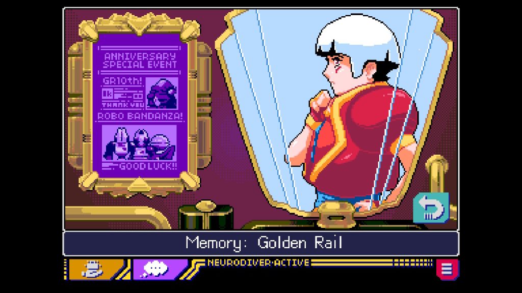 虽然 2064 和 NEURODIVER 都有有趣的角色,但 NEURODIVER 的与众不同之处在于它有一个真正迷人的故事。你看,如果没有危机,卢娜和她的同伴们就没有什么可做的,而这很快就会表现为被称为“金蝴蝶”的混乱代理人。它们四处游荡,抹去记忆,并在受害者的心灵中占据一席之地。卢娜努力修复所造成的伤害,但一路走来,一切都变得更加复杂,也更加险恶。值得庆幸的是,这一切都没有掩盖叙事的总体欢乐本质,但情节肯定会让你不断猜测。甚至还需要一点灵感盗梦空间在冒险的后期,给我留下了一些亟待解决的问题。