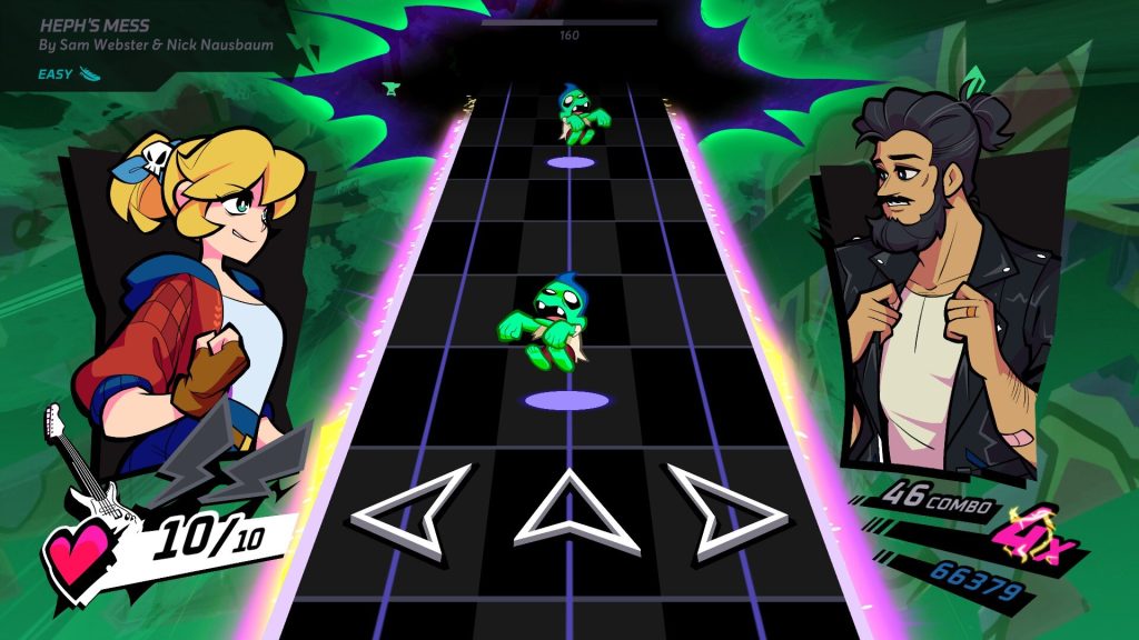 不过,您必须记住的主要事情是 Cadence 的 Vibe Power。通过击败散发着能量的怪物,你将填满你的一个氛围表。一旦你用空格键激活它,你将暂时变得无敌,并且在激活时使你的分数乘数加倍。这对于任何歌曲获得好成绩都至关重要。起初,我得到了很多 D、C 和 B 的成绩,但是一旦我开始不遗漏任何音符并有效地使用我的 Vibe,我最终能够得到一些令人垂涎的 S 分数。
