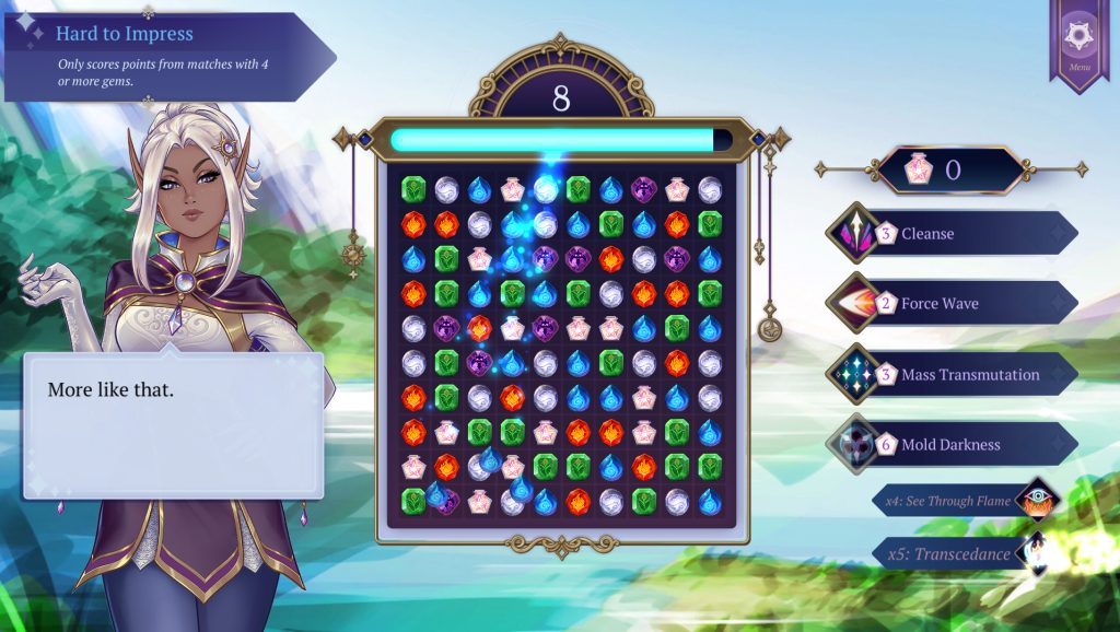 根据你和谁一起度过的时间,你将获得不同的戏法和咒语。前者由一种名为“Pure”的特殊瓷砖提供动力。还有混沌瓷砖,当它们匹配时会降低你当前法术的强度,让你倒退并浪费你宝贵的时间。